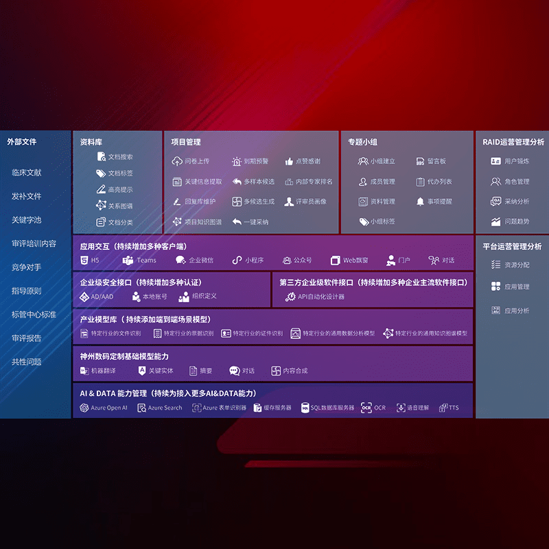 医疗器械产品上市前,,,要熟悉严格与繁复评审标准,,,整理分析监管机构指导文件中的海量信息。。。企业急需一个智能化解决方案,,,,提升知识管理效率,,,提高评审通过率,,,以提升其市场竞争力。。。。