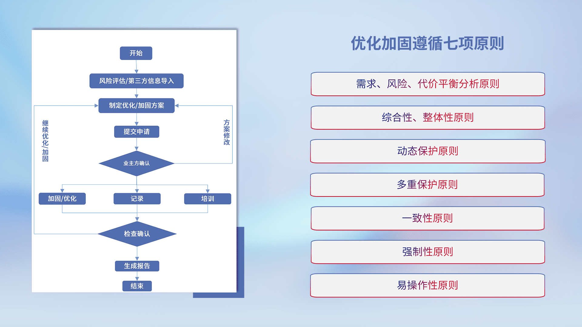 最大程度利用现有资产,,,,对评估发现的问题进行封堵与整改,,,,防止漏洞被利用,,提升整体网络安全性,,,,为客户带来高标准的优化加固服务。。