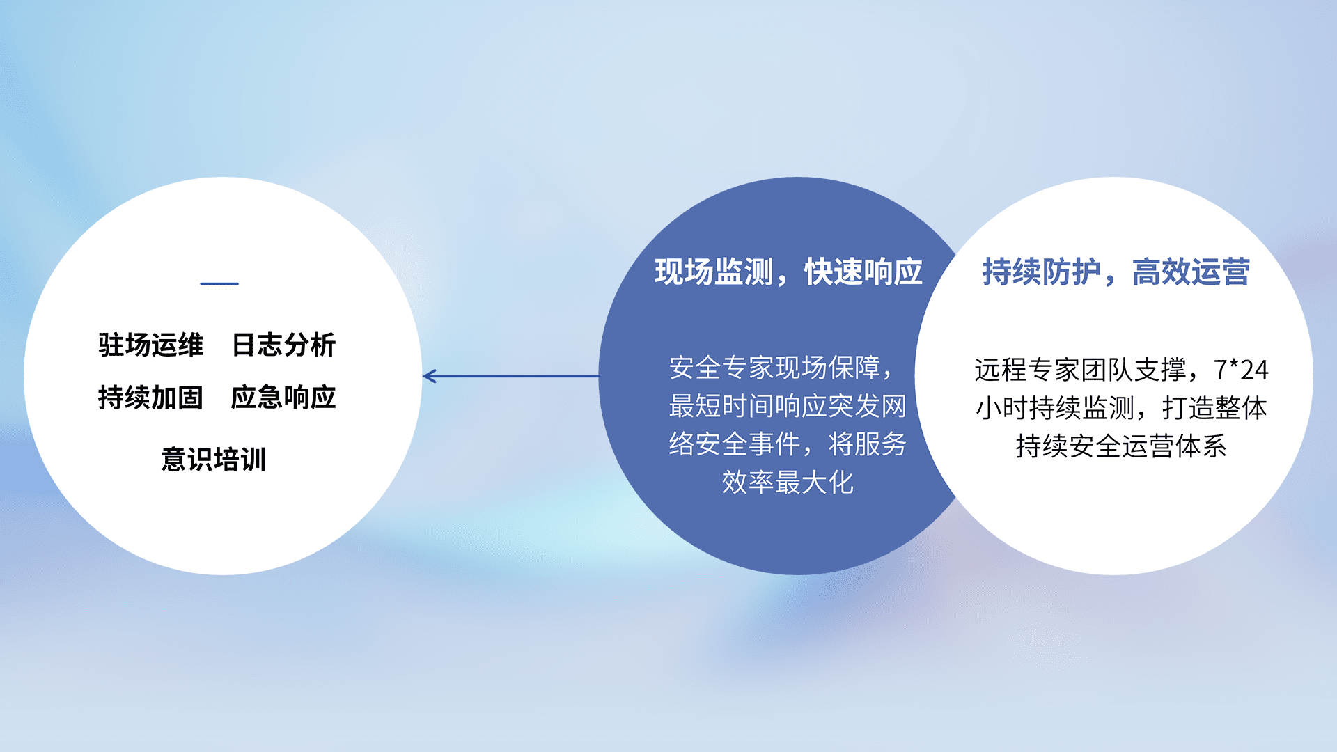 7X24小时持续监测安全事件,保持安全策略有效性,降低资产脆弱性风险,,,,精准拦截黑客攻击,,,,减少被黑客利用的机会,,,,第一时间遏制,,降低损失。。。。